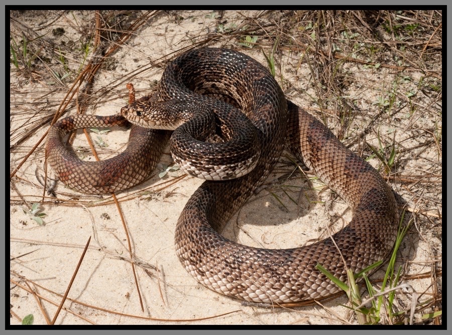 Hisses loudly. When first encountered will hold its own by striking vigorously. It’s a large, powerful constrictor. This is my favorite Florida snake.