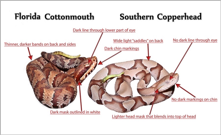 Southern Copperhead vs. Florida Cottonmouth, An Identification Challenge…Same Genus…Different Species